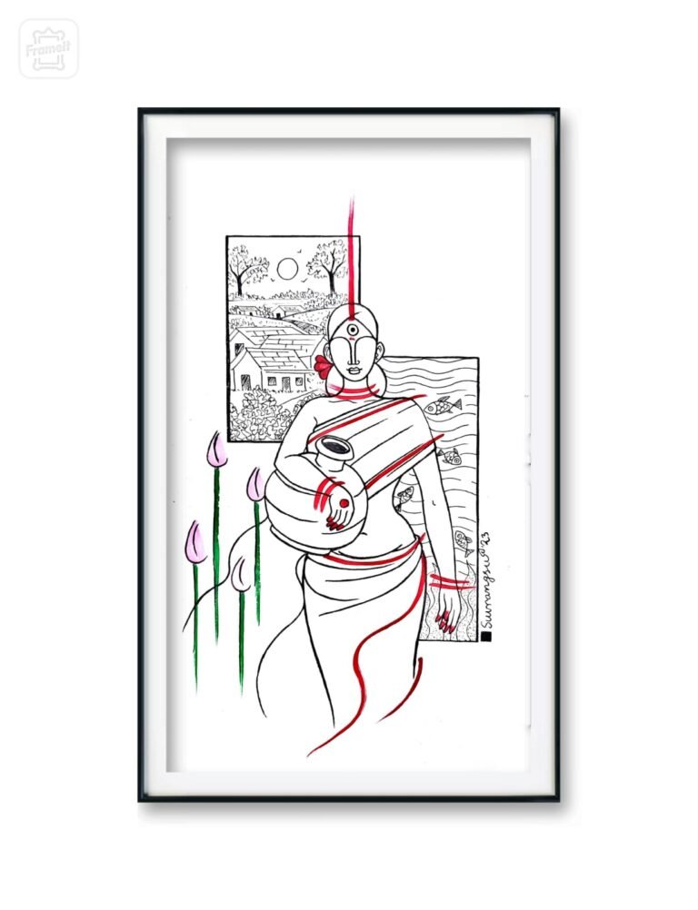The image of Durga as a simple village woman resonates deeply with the lives of countless women across India. She embodies resilience, nurturing, and protective instincts, much like the mothers, sisters, and daughters who shape their communities. By representing Durga in this relatable form, the essence of her strength is brought closer to home, illustrating how ordinary lives can reflect extraordinary power.